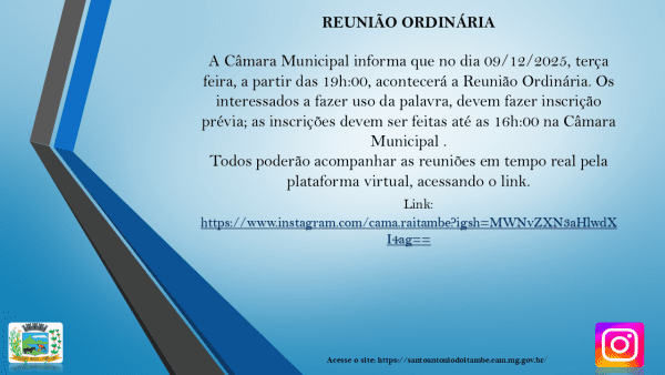 Reunião Ordinária Compartilhar Compartilhar este conteúdo Abre em uma nova janela WhatsApp Abre em uma nova janela X Abre em uma nova janela Facebook Você também pode gostar Reunião Ordinária 02/08/2022 Reunião Ordinária 01/04/2025 Reunião Ordinária 30/05/2025